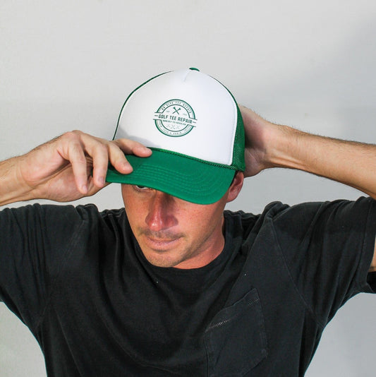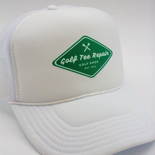 Trucker Hat, Golf Tee Repair Logo, White